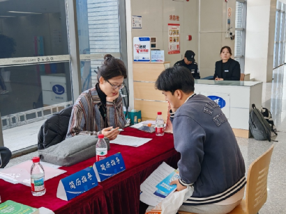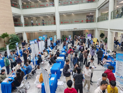 春季就业实习联合招聘会”在嘉定校区济人楼一楼大厅顺利举办。本次招聘会共有86家优质企业参加,涉及电子信息、新能源、智能制造、航空航天等多个行业,吸引了不同学院、不同年级、不同专业背景的学生踊跃参加。