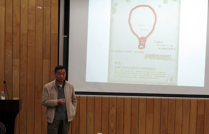 张教授以马克思主义理论为出发点,剖析了资本主义的表面民主及社会主义以人为本的内涵,进而引出对做人的探讨。同时,从动物与人的区别中解释了人独有的品质,并对主要社会热点进行讨论。讲座结束后,张教授针对同学的疑问做了细致的回答。