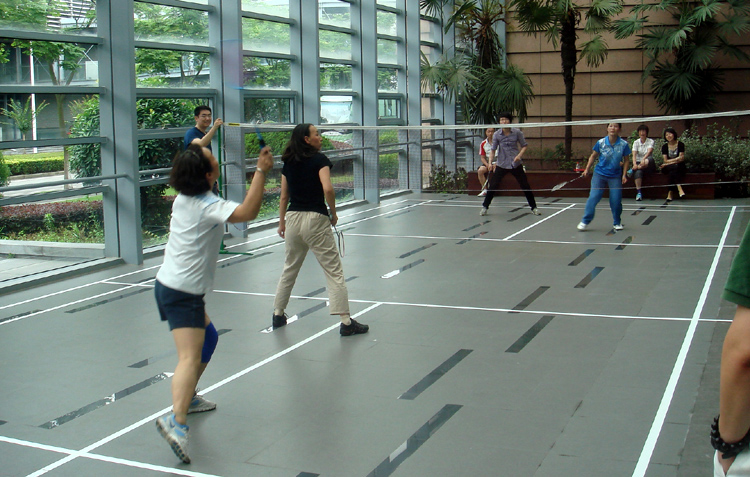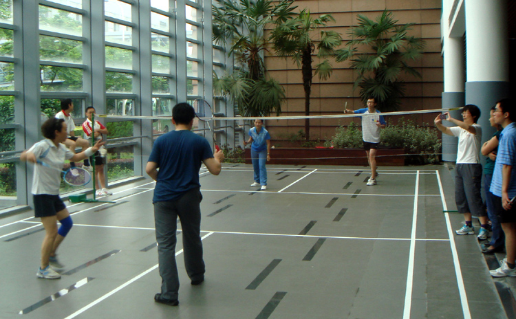 与嘉定校区管委会举行羽毛球对抗赛,至今已举办了6年,每年进行1―2次比赛。(刘 峰)