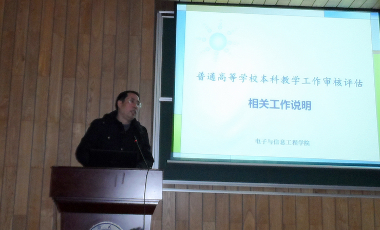 副院长乔非传达了此次审核评估的指导思想为“一坚持二突出三强化”,即坚持“以评促建、以评促改、以评促管、评建结合、重在建设”,突出内涵建设和特色发展,强化办学合理定位、教学中心地位、质量保障体系建设。乔院长指出,此次审核评估工作的重点是对学校人才培养目标与培养效果的达成度进行判断,考察人才培养目标与社会需求的适应度,教师和教学资源对学校人才培养的保障度,教学质量保障体系运行的有效度及学生和用人单位的满意度。评估工作将以专业为基本单位,在学院现状基础上梳理办学理念和人才定位,促进卓越人才培养、提升本科教学质量和保障条件。乔院长还就现阶段评估准备工作的完成情况和下一阶段的工作安排做了详尽的介绍。