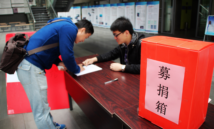 积极响应,在嘉定电信学院大楼1楼设立了固定募捐点。