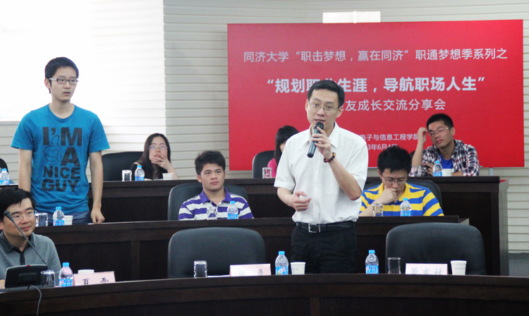 交流会上,童学锋书记首先致词,充分肯定了校友对学校和学院发展的重大贡献,表达了对校友关心关注母校发展的感激之情,同时也代表学院欢迎校友常回来看看。四位校友分别通过回顾自己大学学习生活的点滴,表达了对母校培育之恩的感激:时任上海浦东电信局副局长的98届校友夏雷结合自己多年领跑下一代网络的经历,向同学们阐述着务实拼搏与谦虚谨慎,也诠释了团结与创新;蓝海生技能源有限公司的中国区总经理张勇则通过分享在阿尔卡特、华为工作情况以及个人创业的经历,引导大学生要以豁达进取的人生态度,秉承“同志、同舟、同甘”的三同理念,坚持RICH(Reliable、Industrious、Competent、Harmonious)实践路线,缔造精彩人生;华腾公司保险与证券业务线副总经理徐文志通过介绍如何转换工作和学习角色,引导大学生树立时间管理与统筹规划的理念;新时达驱动硬件部经理江振洲校友通过毕业择业、规划发展等,引导大学生学会珍惜时间、明确目标、付诸行动、善于合作、乐于分享。互动环节,大学生还与优秀校友针对专业学习、技术与管理、家庭与事业、人生规划与发展等相关话题展开了激烈的讨论,现场气氛热烈,取得了良好的效果。