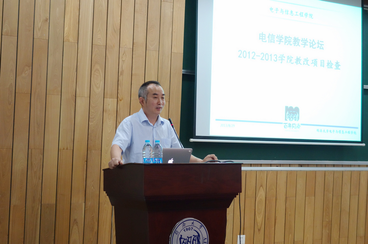 2012-2013年度教改项目验收会暨学院第五次教学论坛于8月29日和30日两天在嘉定校区电信楼117报告厅举行。院长陈启军出席并发表了讲话,副院长乔非主持了本次会议。学院教务委员会成员、各专业核心课程负责人、院教改项目负责人以及教务科全体成员参加了本次会议。
