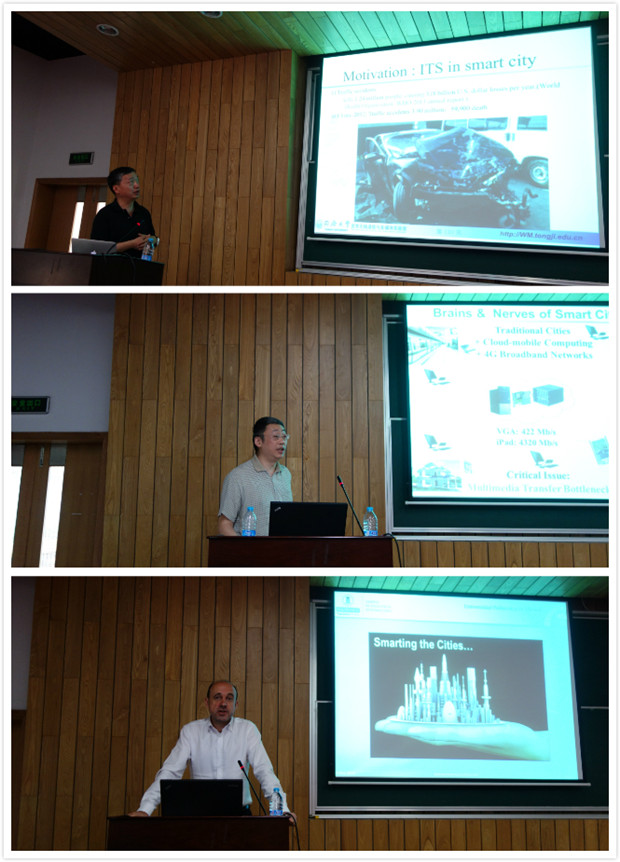 林涛教授、加泰罗尼亚理工大学建筑学院国际关系副院长Perez Yuste教授分别做了题为“Future communication for ITS in smart cities”, “Challenges for the deployment of next generation networks in urban areas”, “Screen content coding in cloud-mobile computing and 4G era”, 以及“An information society approach to smart cities”的演讲,并与同学们展开了互动。