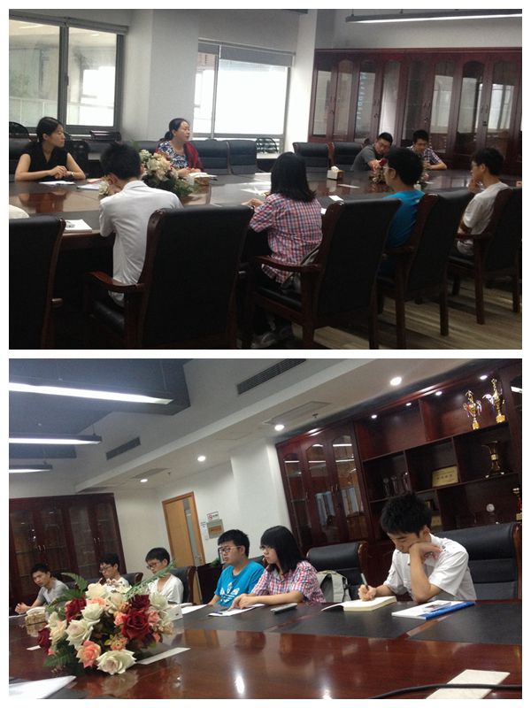 2013级学生已于7月5日全部搬至嘉定校区。7月7日上午,学院在智信馆305室召开2013级学生座谈会,以了解2013级同学对迎新工作的看法和建议,旨在提高学生工作质量,增强学生对学院的归属感和认同感。学院党委副书记董变林老师和学生党总支副书记王晶晶老师出席了会议,15名来自2013级各个班级的学生参加了此次会议。