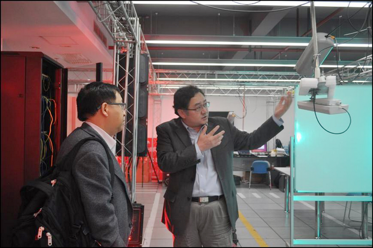 方院士参观了教育部重点实验室各个研究平台,包括可信监控电子交易平台、脑认知研究平台、情境感知平台、嵌入式视频监控平台、无人车赛道监管平台、虚拟仿真平台和虚拟现实研究平台等,并与实验室的师生进行交流。(毕卓)