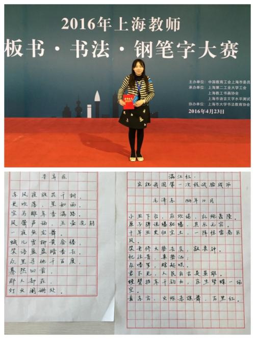 4月23日,2016年上海教师板书•书法•钢笔字大赛在上海第二工业大学举行。本次大赛由上海市教育工会主办,上海市第二工业大学、上海教工书画协会、上海市语言文字水平测试中心承办,上海市大学书法教育协会协办。91porn