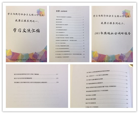 学生党总支整理了《学习与践行社会主义核心价值观成果汇报系列》之《学习交流汇编》和《2017年寒假调研报告》,系统总结了总支在学习与践行社会主义核心价值观所做的尝试。