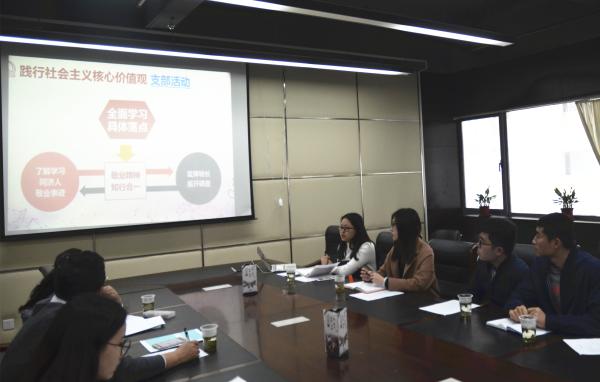 支部书记郭姿鹬先对活动主题进行了简要说明,本次主题以同济人为切入点,由党员们结合校史谈社会主义核心价值观之“敬业”精神。支部党员们分别围绕建校时期、李庄时期、李国豪时期和当代四个不同阶段的同济人的精神交流各自的认识,其中危江川同学以本学院计算机科学与技术系的王瀚漓教授作为本系敬业同济人的代表,说出了自己的感悟。大家表示,学生的首要职责便是学习科学文化知识,在学术过程中应当传承各时期同济人身上的爱国敬业精神,攻坚克难,以自身行动践行社会主义核心价值观。