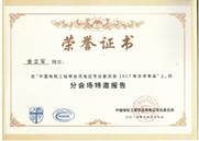 电气设备检测与故障诊断科研团队多年来在基于多源图像信息融合技术应用上的研究进展,通过对高电压外绝缘缺陷检测与故障预测方法的研究,为电力系统安全稳定运行提供状态信息参考,报告受到了与会专家的一致好评。金立军教授指导研究生程逸帆、侯珂、陆坡燕、戴伟伟等同学撰写的论文《含风电的配电网电压稳定域分析及概率安全预测研究》被评为大会优秀论文。(戴伟伟)
