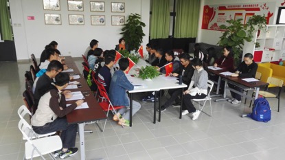 11月4日下午,学生党总支组织入党积极分子在嘉定校区7号楼党建活动室集体学习十九大报告,由学院党总支委员林秋琴老师带领学习。