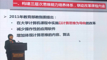 龚沛曾教授应邀作了“联动改革课程内涵,建设和使用在线课程群,提升计算思维能力”的大会专题报告。