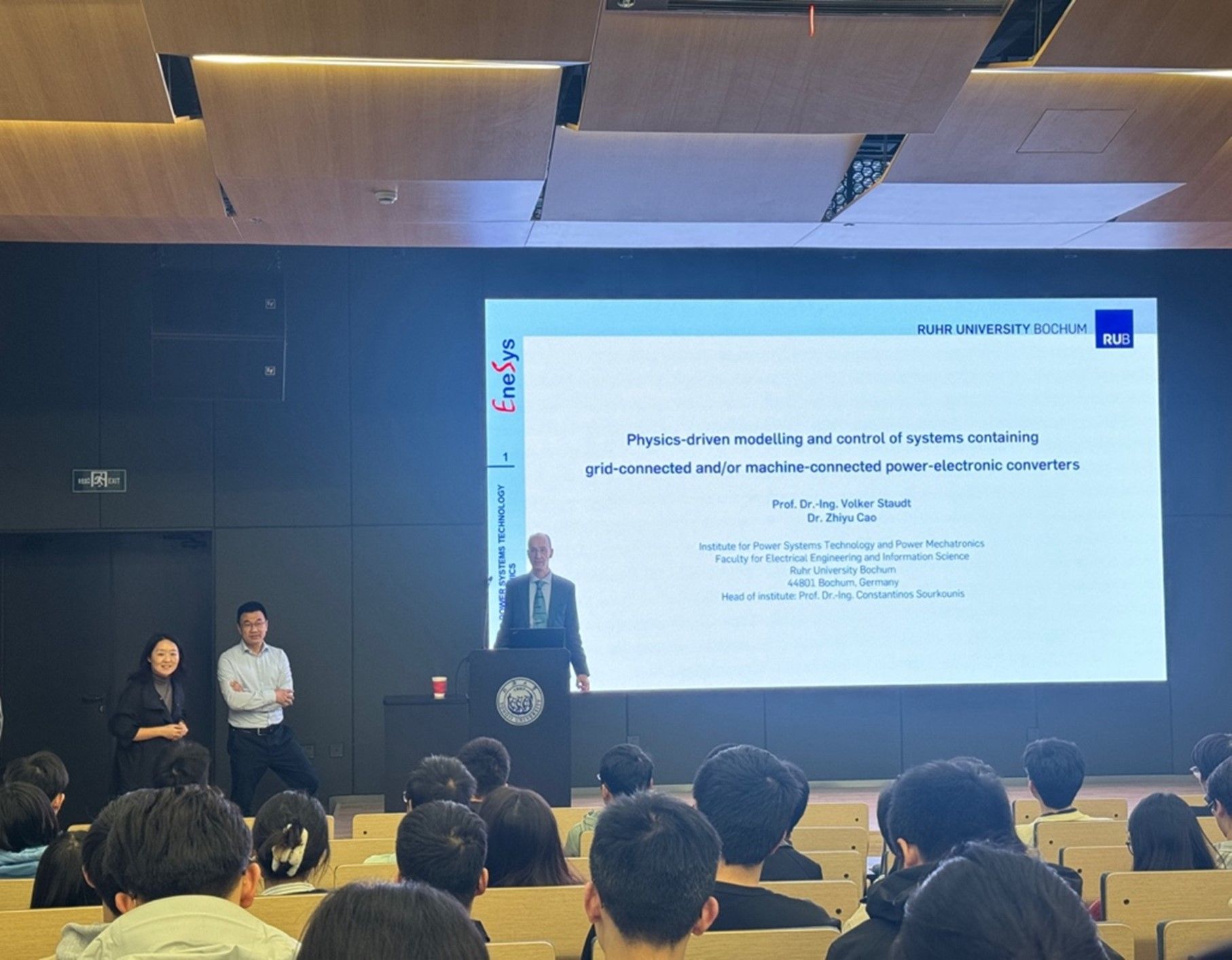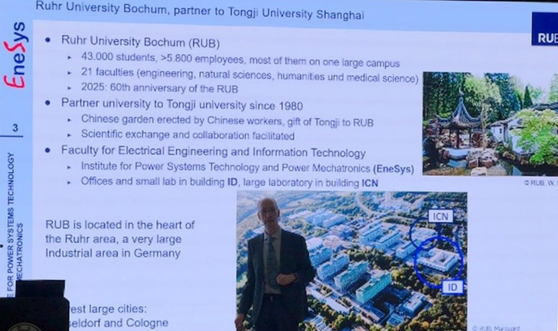 在此报告中,Volker Staudt教授介绍了基于物理机理的建模与控制方法,并通过多个以轨道交通系统为核心的实际案例阐述了相关挑战及应对策略。针对不同问题,报告展示了改进的控制技术与考虑非理想效应的模型方法。多数研究以铁路系统为背景,其核心思想同样可推广至可再生能源变换器控制领域,如风力发电与光伏发电系统。具备能量感知特性的感应发电机控制策略,可显著提升直流母线电压稳定性;全速域无传感器控制以及电网友好型变换器运行等先进成果。这些研究进展充分体现了EneSys研究所在理论研究与工程实践结合方面的领先地位,为未来高效、可持续的能源系统发展提供了有力支撑。